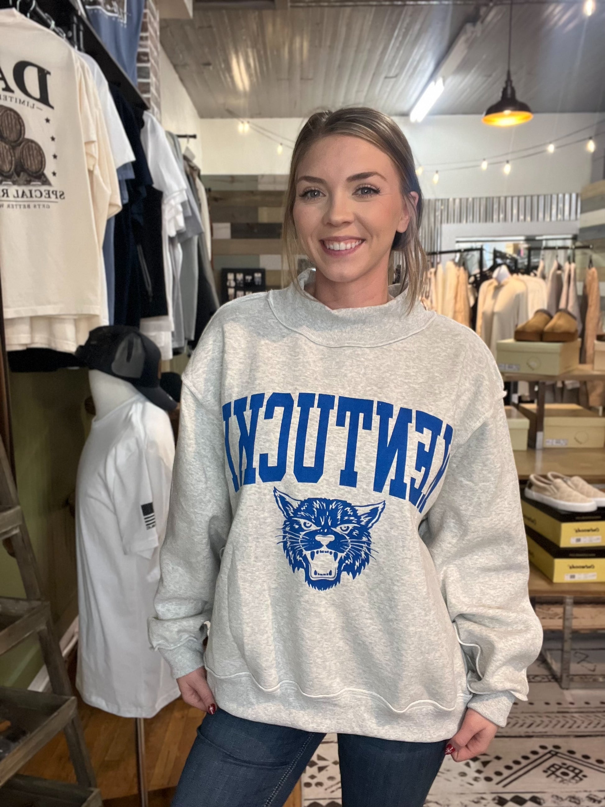 KENTUCKY Mascot Print Reversible Mock Neck Sweatshirt: H. GREY